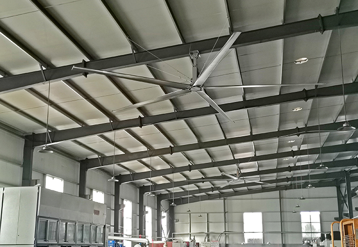 3.干燥物體表面及驅(qū)散室內(nèi)污濁空氣:巨量流動的空氣掠過物件表面,帶走聚集在物件表面的潮濕空氣,阻止設(shè)備生銹。超大吊扇推動的巨量氣流可以將空氣中的煙塵驅(qū)散并加速其排往室外。