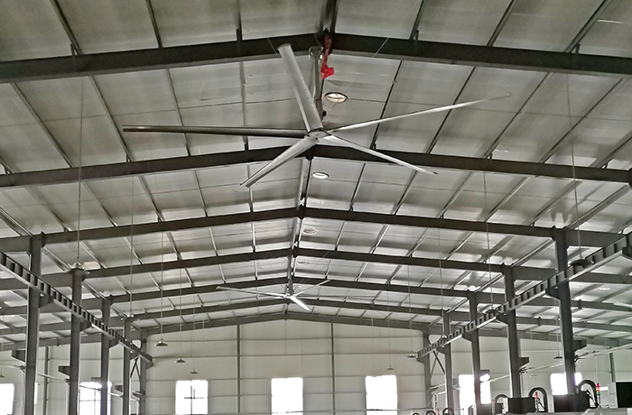 工業(yè)吊扇的體積較大是毋庸置疑的事實,為了安裝完成之后出現(xiàn)扇葉或其他部位的脫落情況,因此在防脫裝置上進行了加固處理,將扇葉、底盤和電機連成一體,另外在扇葉本體內(nèi)嵌入鋼絲網(wǎng),將每片扇葉通體相連,防止扇葉出現(xiàn)斷裂局部掉落的現(xiàn)象。
